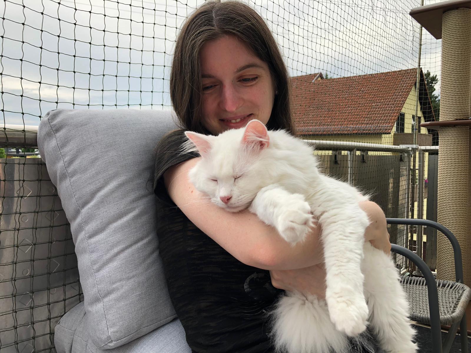 Als ich das erste und einzige Foto von Camillo aus Griechenland sah, war ich sofort verliebt und wusste: Dieser Kater kommt zu uns! Die Papiere waren schnell fertig gemacht, der Flug gebucht. In freudiger Erwartung sind wir ihn abholen gefahren und fanden einen eingeschüchterten Kater vor, der Menschen noch total doof fand und sich mit aller Kraft wehrte in die Box zu steigen. Zuhause angekommen konnte er erstmal zur Ruhe kommen. Leider hat es das Schicksal nicht gut mit ihm gemeint und er ist kurz nach der Ankunft an Katzenschnupfen erkrankt. Uns standen in der nächsten Zeit einige Tierarzt-Besuche bevor, die uns jedoch näher zusammen geschweißt haben.