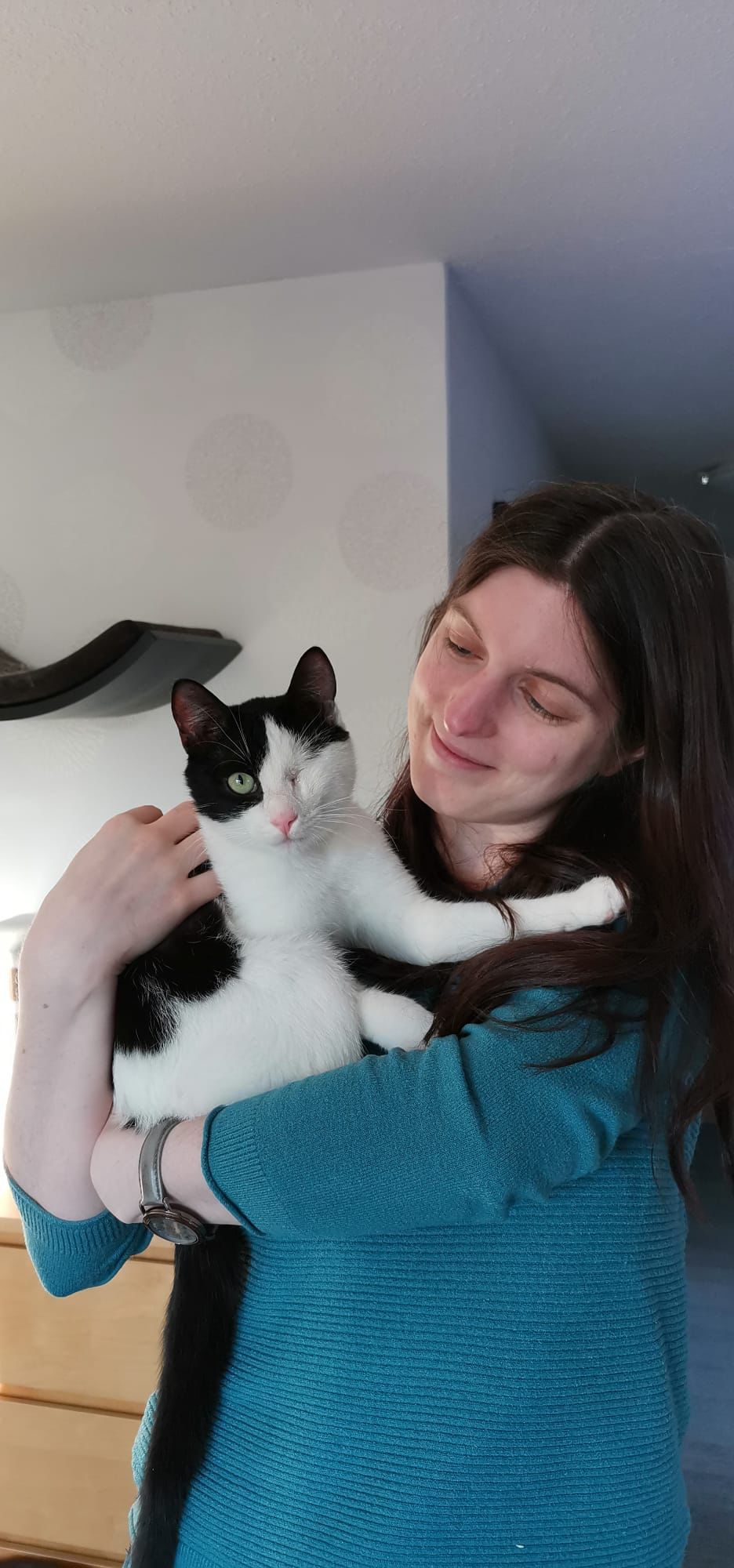 Dafino kam im Februar zu uns, eigentlich wollten wir nur seine Pflegestelle sein und ihm so den Start in sein neues Leben und die Suche einer Familie erleichtern. Er wurde mit einer schweren Verletzung am Auge auf der Straße gefunden, sodass das Auge leider nicht gerettet werden konnte. Das schränkt ihn aber überhaupt nicht ein. Schlimmer waren die folgenden Monate, die Dafino beim Tierarzt im Käfig verbringen musste, weil ihn einfach niemand wollte. Somit fiel uns die Entscheidung leicht, uns als Pflegestelle anzubieten, was für uns auch das erste Mal sein sollte.