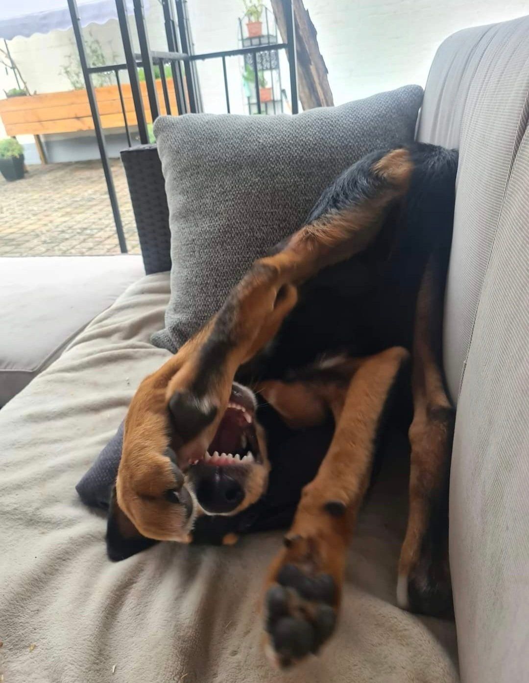 Irgendwann hat das Auto dann gehalten und eine komische Fremde hat mich angestrahlt, als sei ich das leckerste Häppchen der Welt. Aber sie wollte dann zum Glück dich nur kuscheln. Ich bin dann mal mit eingestiegen. Seitdem sind einige Monate vergangen und ich kann euch sagen- die Frau hab ich ganz schön auf Trabb gebracht! Ich hab gekaut und wollte aufs Sofa (da war schließlich die nette Frau auch) und hab sie vor allem beschützen wollen!