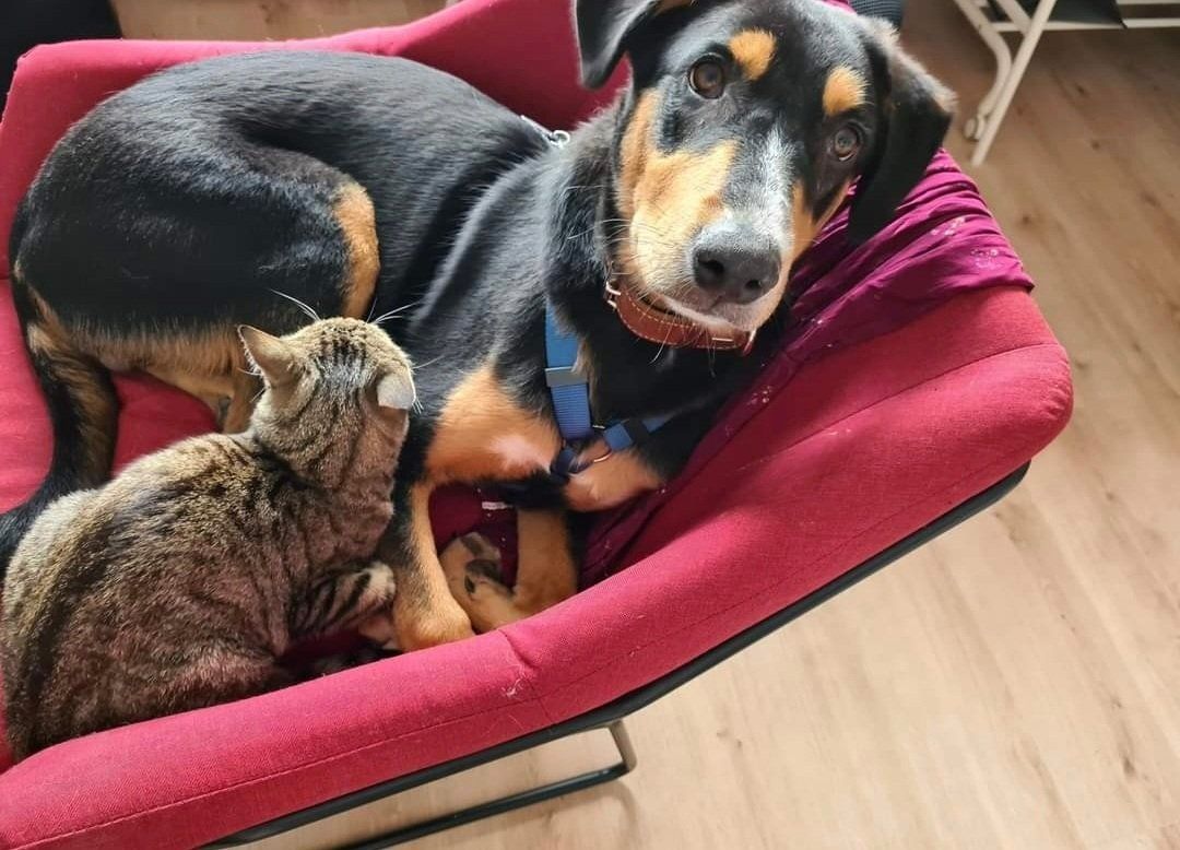 Ich bin Fritz. Da ich als Baby in Griechenland bei Daniela aufgenommen wurde, konnte ich schon bald nach Deutschland reisen. Damals hatte ich viel Spaß und habe viele Katzen und Hunde kennengelernt und hatte immer einen vollen Napf. Das ist gut, ich war nämlich der größte von meinen Geschwistern und wollte viel wachsen.
