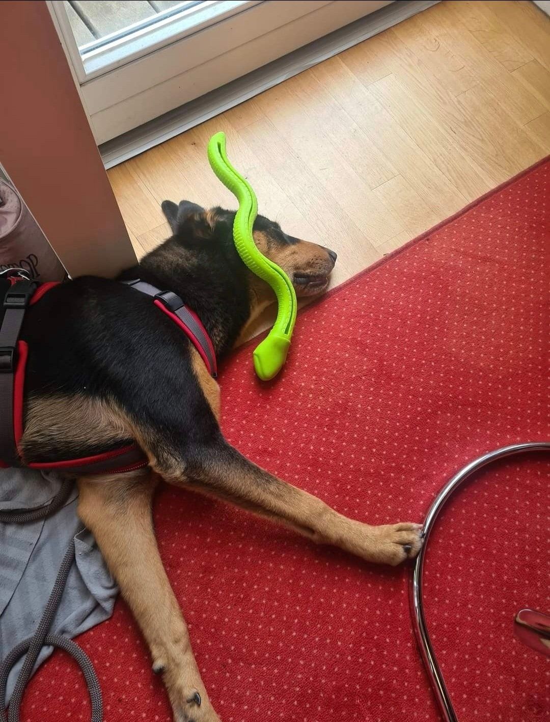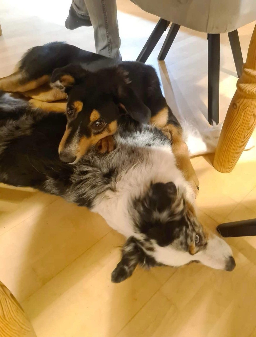 Heute sind wir ein tolles Team und machen viel sport- ich werde jetzt Zughund. Ich glaube meine Freundin hat verstanden, dass ich einfach zu schlau und zu aktiv bin für ein normales Hundeleben. Ich denke, ich bin ein Hütehund. Meine Freundin sagt "Aufmerksamkeitsdefizitsyndrom" - aber ihr wisst ja wie die Menschen sind. Für alles ein Begriff, aber die Praxis müssen sie erst lernen. Zum Glück ist meine Lehrerin ein großer Fan und glaubt, ich bin einfach zu schlau. Sie sprach von Spürhund und Polizei oder solche komischen Wörter. Aber ich hab auf jeden Fall Spaß in meinem ganz "normalen" Leben mit vielen lustigen Übungen, bei denen ich immer besser mit meiner Nase und meinem Körper umgehen kann.. fliege... Blume.. wo war ich? Ach ja, ich lerne mich zu konzentrieren.