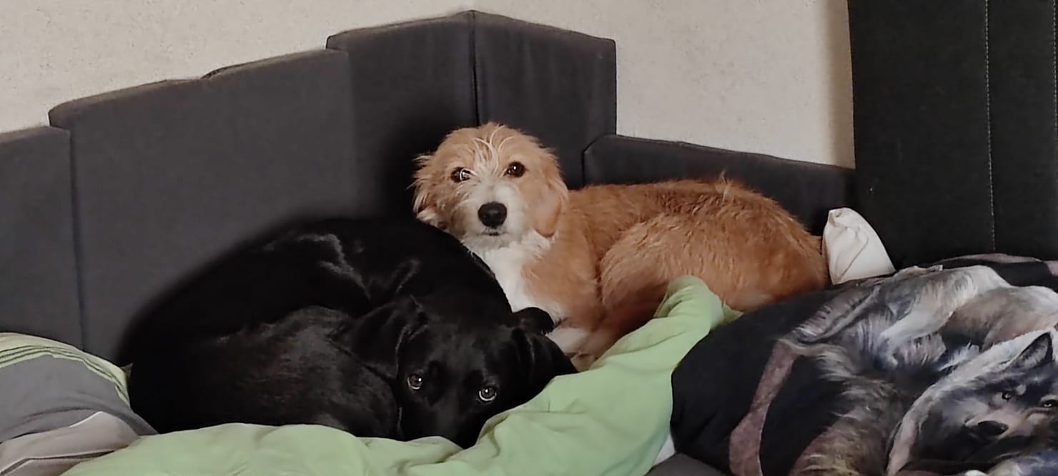Juli 2020 kamen Mia und Bonny angereist, Mia zu uns, Bonny fuhr noch weiter. Wir hatten unseren Spaß, Mia ist eine Seele von Hund so lieb und anhänglich, aber sie wollte/will auch immer viel spielen, sie liebt es durch hohes Gras zu pesen, hören war auch super aber immer nur alleine war doch etwas langweilig, also haben wir überlegt und beschlossen eine Freundin muss her. Was bei Ihr und letztendlich bei allen drei sehr lange gedauert hat war das Pipi nach draußen zu bringen, es landete oftmals noch in der Wohnung .